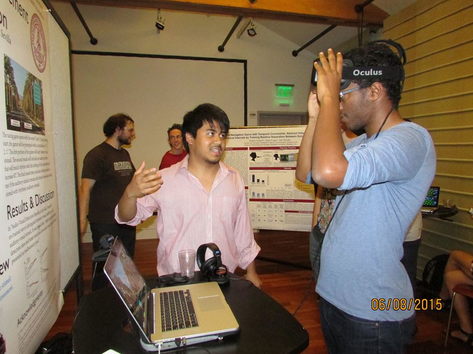 Explaining Virtual Reaction to my friend at the Synapse Arcade. He was the first of only two people to beat the game’s hard level!